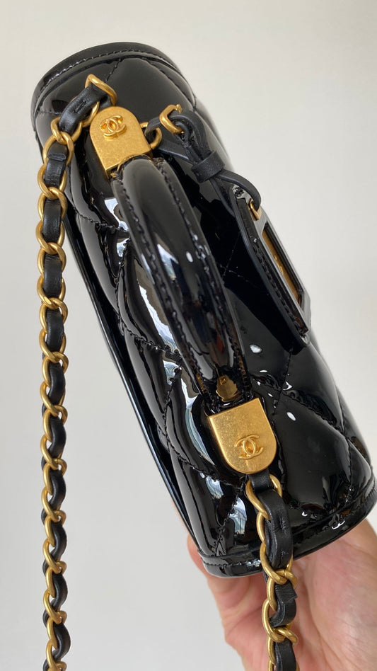 0528 Mini Rectangular Pearl Crush Quilted Black Lambskin Gold Hardware
