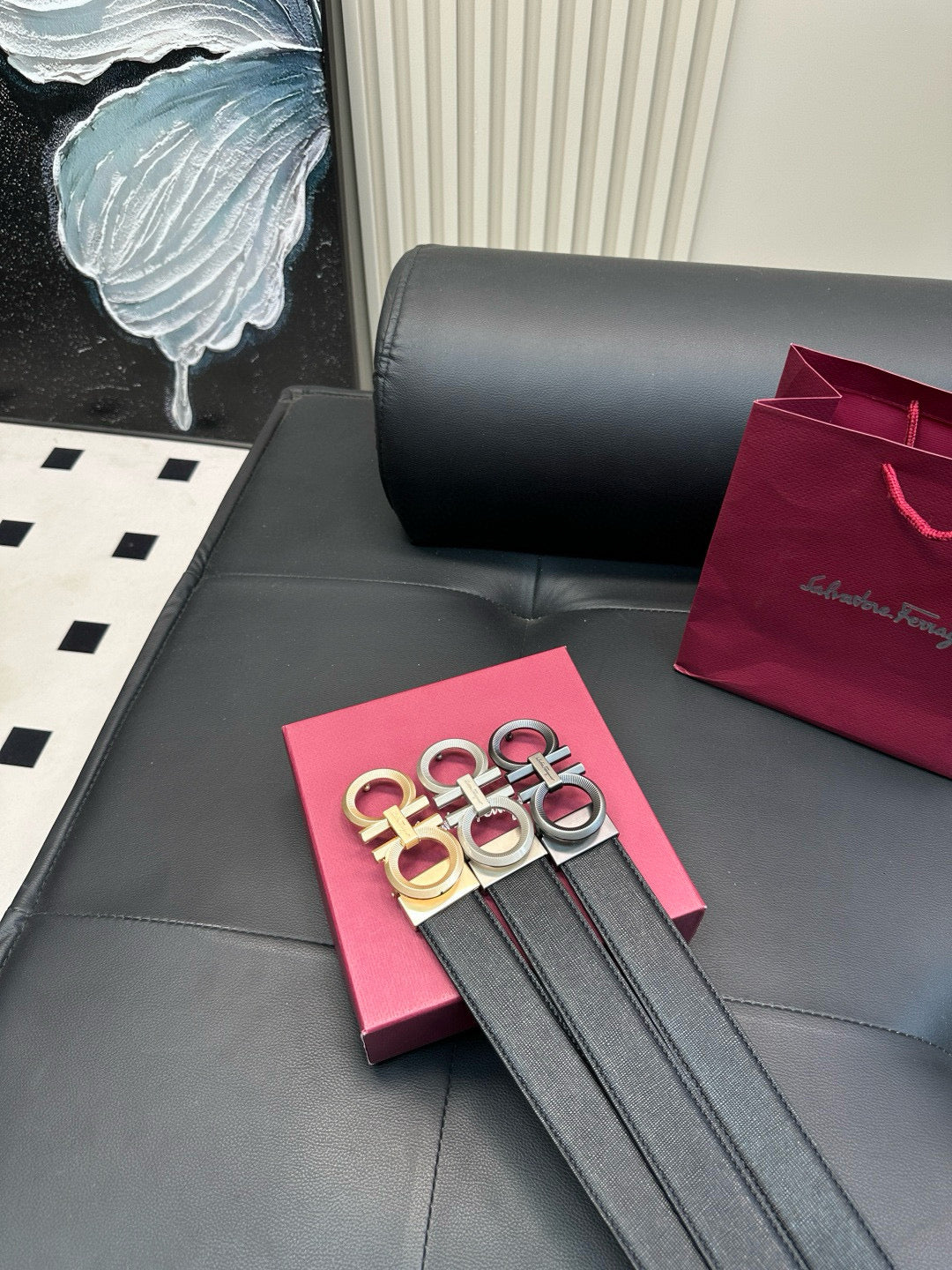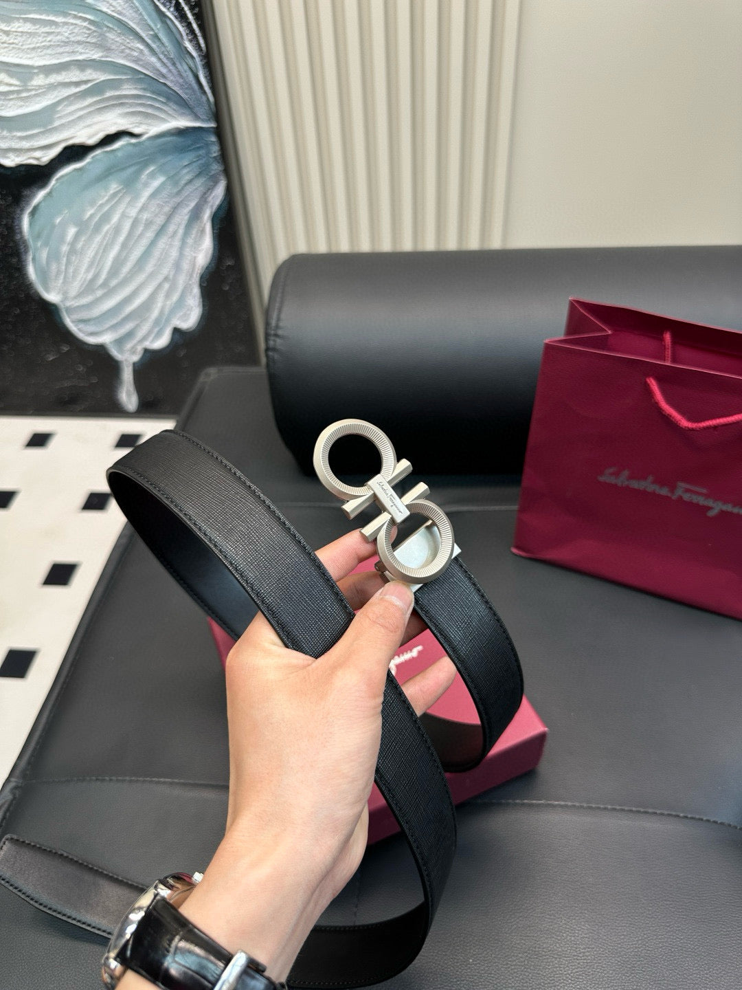 Ferragamo Gear pattern, frosted surface, steel buckle