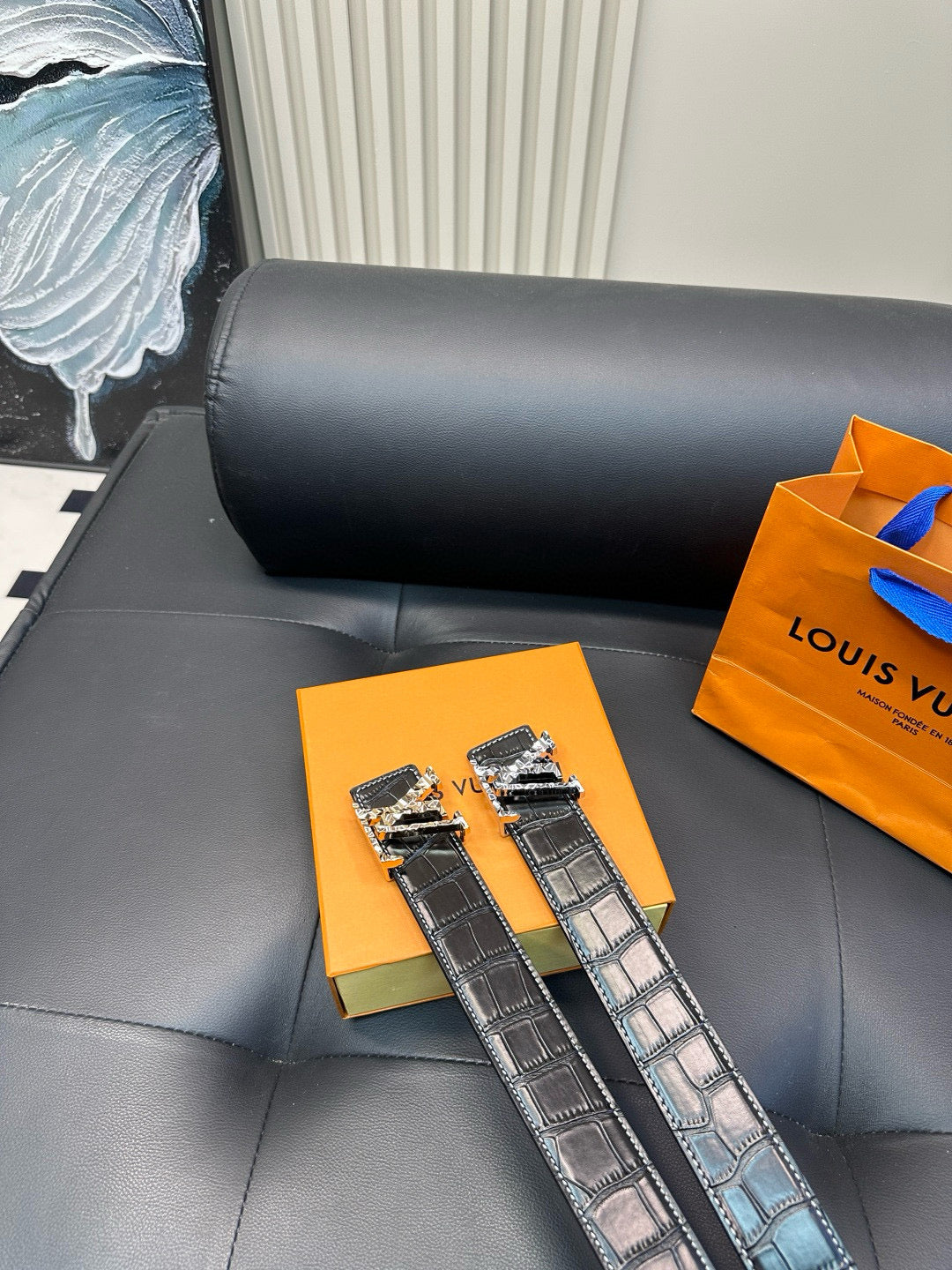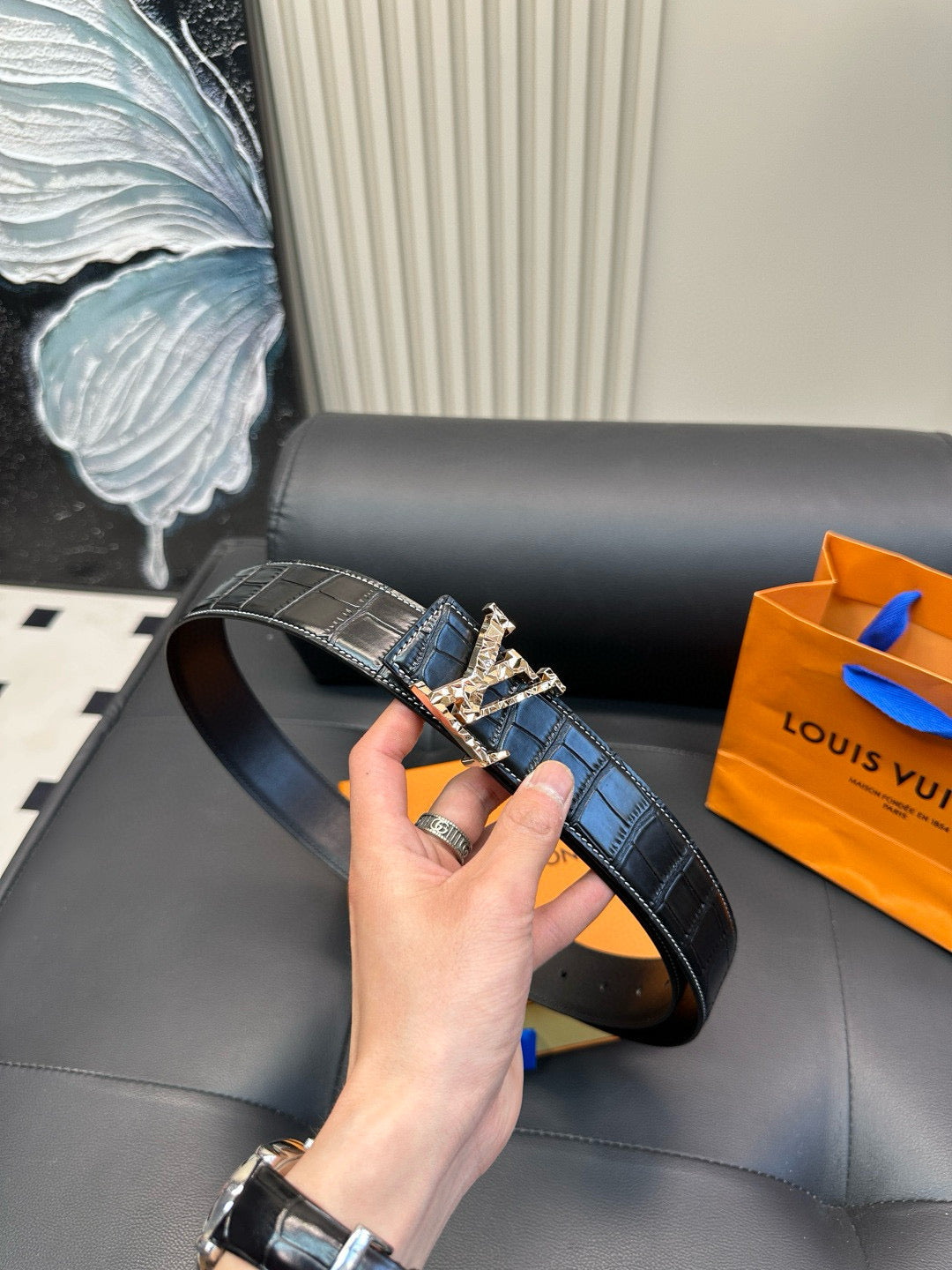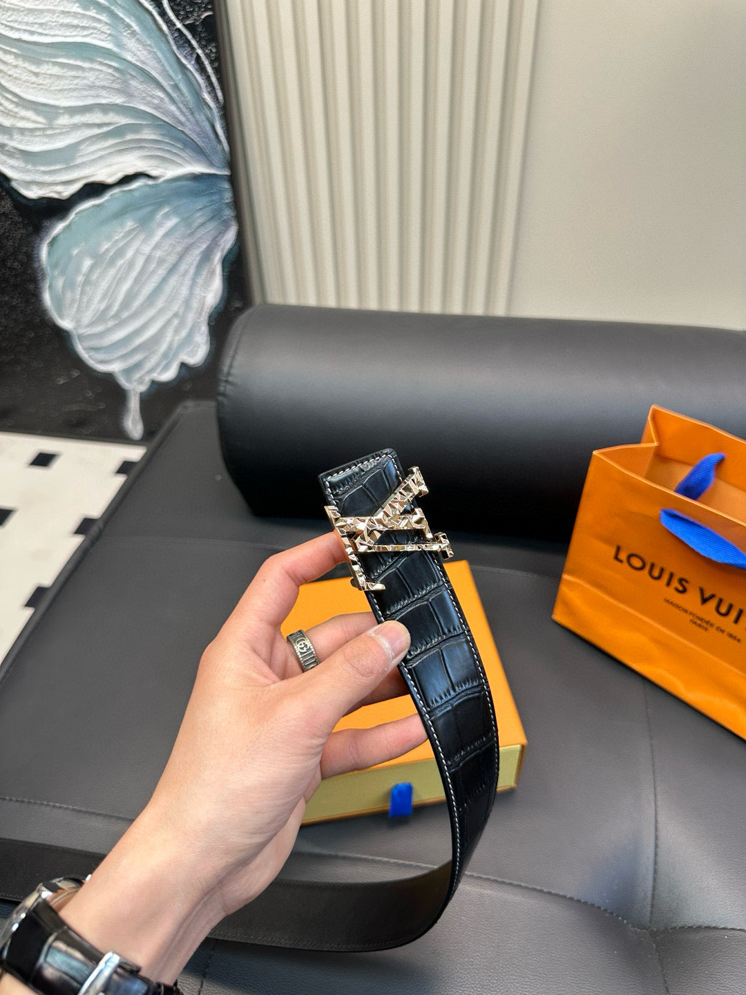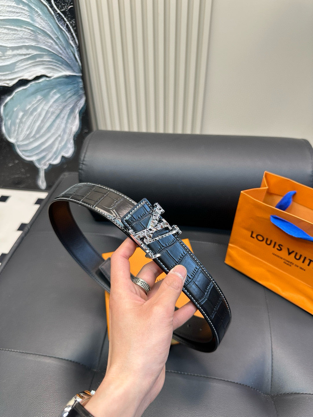LV Diamond-cut steel buckle with crocodile skin pattern